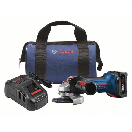 Kit de Pulidora Angular: 4 1/2 pulg, Deslizante, sin Seguro, (2) 6.3 Ah, 18V DC, Cabeza Estándar